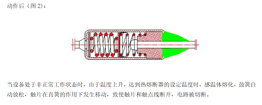 实际动作温度 | 温度保险丝在硅油池内以每分钟 0.5 - 1.0℃速率升温,检测电流小于 10mA 条件下所测得的熔断温度。它是温度保险丝的实际动作温度。 |